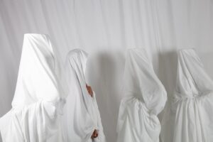 Thirsty is a small Korean girl, who speaks for the collective 200,000 mothers and daughters. It’s not about the art itself but the voyage, the tears, and thirst for justice. In this body of work, I placed myself in their shoes making Thirsty ultimately a self-portrait. I wear the hanbok of the working class – and more specifically the white jeogori top with a black chima. This is what they wore, as slaves who were forced to “comfort” the Imperial Japanese Army soldiers and sexually gratify them. I was recently told by several Korean women the black and white hanbok were specific to colonial Korea, where women and girls were forced to wear these garments everywhere. Someone said it was also the garment worn by students and teachers. To me – these colors represent the era of inequality and dehumanization.