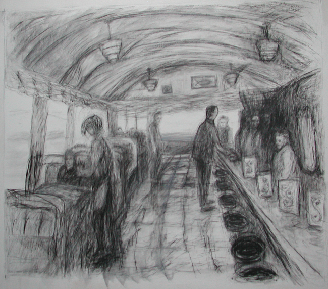 Have you ever seen a huge-mongous drawing? Rae Johnson’s paintings, average 48”, appear as pencil drawings writ large. Walk up to one; it introduces itself and shakes your hand as a painting, but it’s a painting that looks like a huge pencil work, or a watercolor.