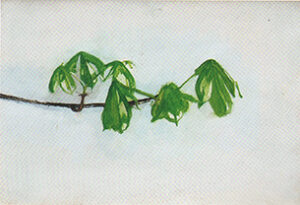 Another gem of choice was the a sparse well considered rendering, careful observed work of leaf clusters situated on a solidarity branch with plain non painted natural white background, Branch by Patrick George. A minimal and very restrained beauty not unlike oriental expression gives a stature to this work.