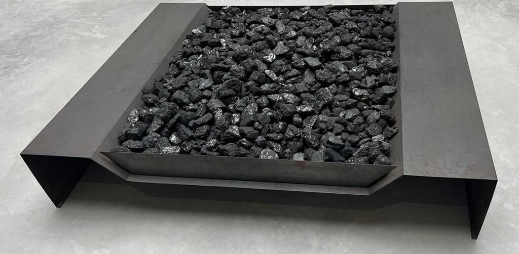 Further on, Mario Merz’s lifelong companion, Marisa Merz’s Senza Titolo’s delicate rhythmic sounds of water flowing in a fountain rise above a wax violin in a lead basin on the ground providing opposites; malleable wax surrounded by formed, hard impenetrable lead, as a magnet attracting the metal spout, shapes the water into the form of a heart. The force of magnetism urges lead to bend into a shape interpreting love, recalling the biblical admonition to turn weapons into plowshares.